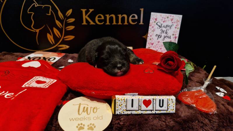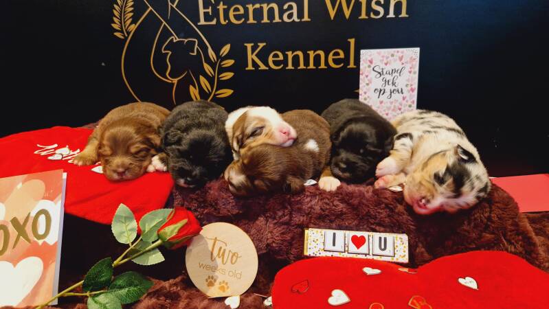 De dotjes zijn ondertussen 2 weekjes oud en de ogen zijn bij de meeste al open. Ze worden steeds actiever in de werpkist. Ze proberen meer te wandelen en ze spelen ook al een beetje samen. Ze doen het allemaal super. We zijn verliefd op dit prachtige stel!