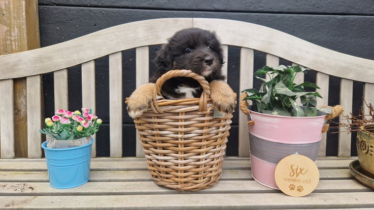 Vandaag alweer 6 weken. De afgelopen week hebben ze heerlijk buiten kunnen spelen in de grote buitenren in de tuin vol met speelgoed. Regen of wind, geen enkel probleem. Ze hebben ook voor het eerst een andere hond ontmoet, Simba, en daar reageerden ze heel goed op. Ook zijn ze voor het eerst met de kar mee naar buiten geweest en buiten los geweest op een groot grasveld. Het liep allemaal heel gemoedelijk! Vandaag gaan ze voor het eerst naar de dierenarts voor hun titerbepaling. Spannende dag dus!