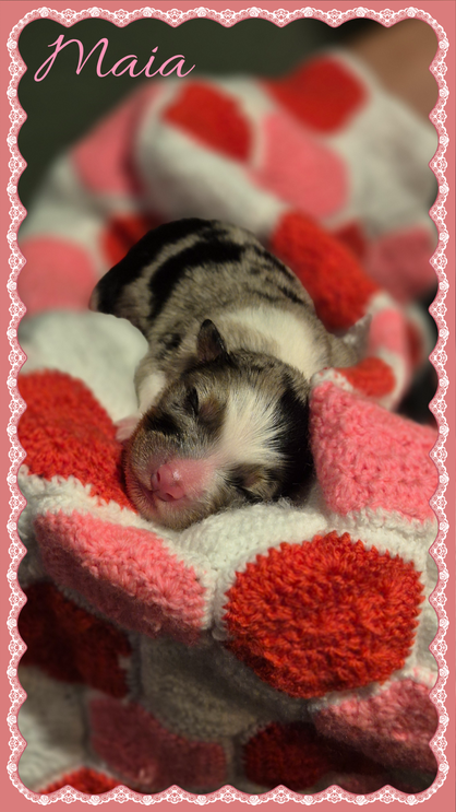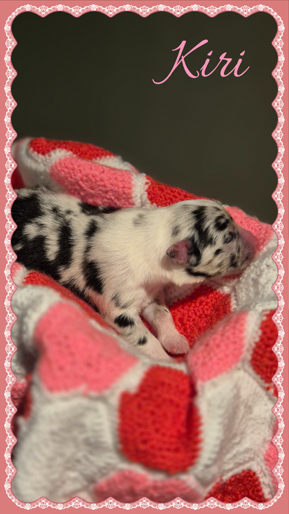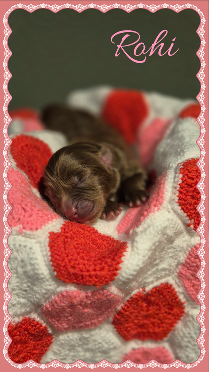 Ik zal de pups voorstellen hieronder. Op volgorde van geboorte zijn hier de dotjes: