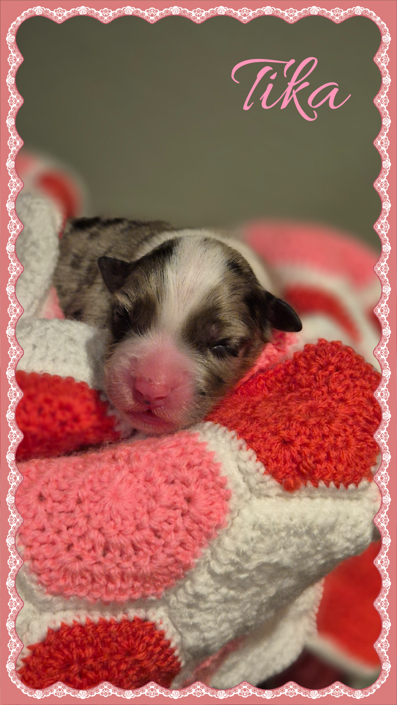 Ik zal de pups voorstellen hieronder. Op volgorde van geboorte zijn hier de dotjes: